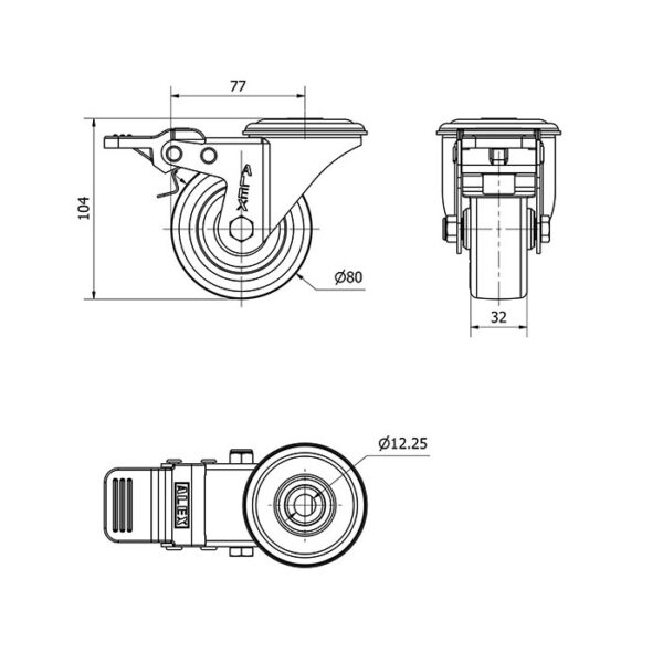 Rueda poliuretano giratoria con freno Alex diametro 80 mm. modelo 2-4172