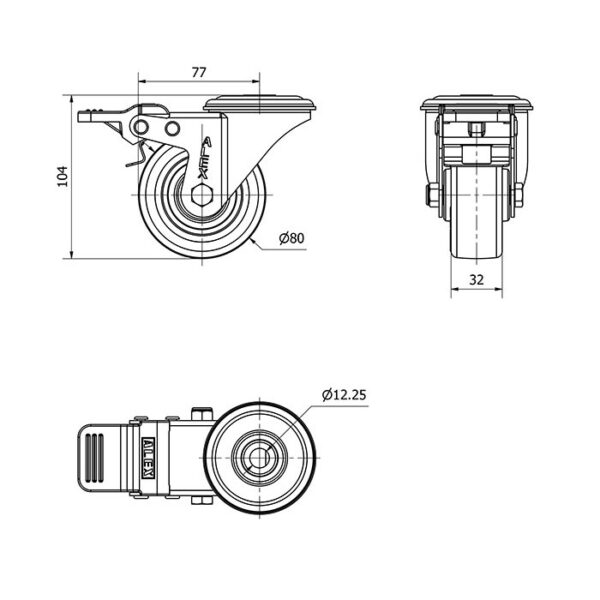Rueda poliuretano giratoria con freno Alex diametro 80 mm. modelo 2-4173