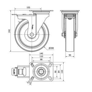 Rueda poliuretano giratoria con freno Alex diametro 80 mm. modelo 2-4242 EAN 8422202242422