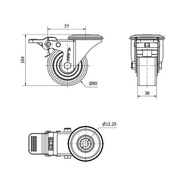 Rueda poliuretano giratoria con freno Alex diametro 80 mm. modelo 2-4658