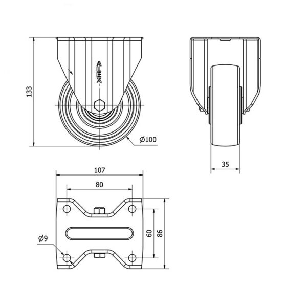 Rueda resina fenolica fija Alex diametro 100 mm. modelo 2-4527