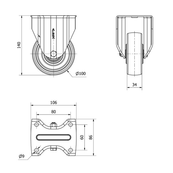 Rueda resina fenolica fija Alex diametro 100 mm. modelo 2-4984