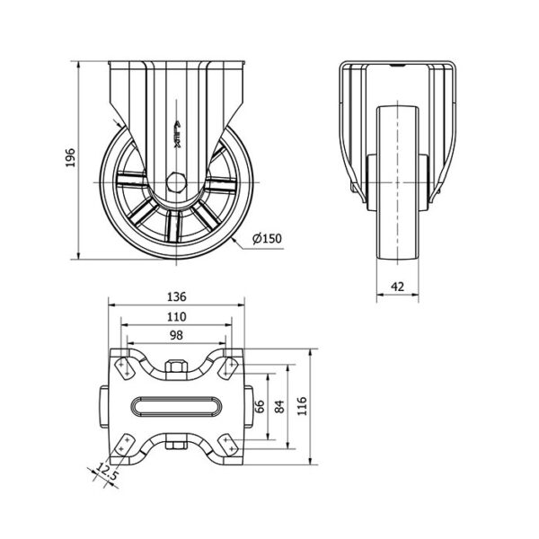 Rueda resina fenolica fija Alex diametro 150 mm. modelo 2-1181