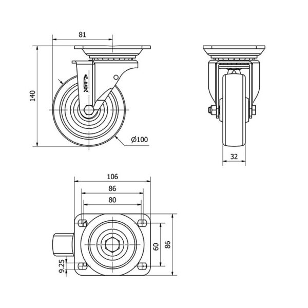 Rueda resina fenolica giratoria Alex diametro 100 mm. modelo 2-0012