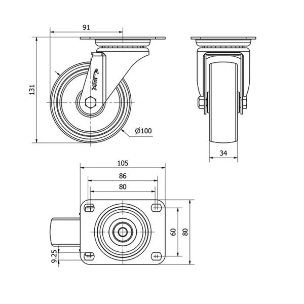Rueda resina fenolica giratoria Alex diametro 100 mm. modelo 2-1096