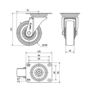 Rueda resina fenolica giratoria Alex diametro 100 mm. modelo 2-1096