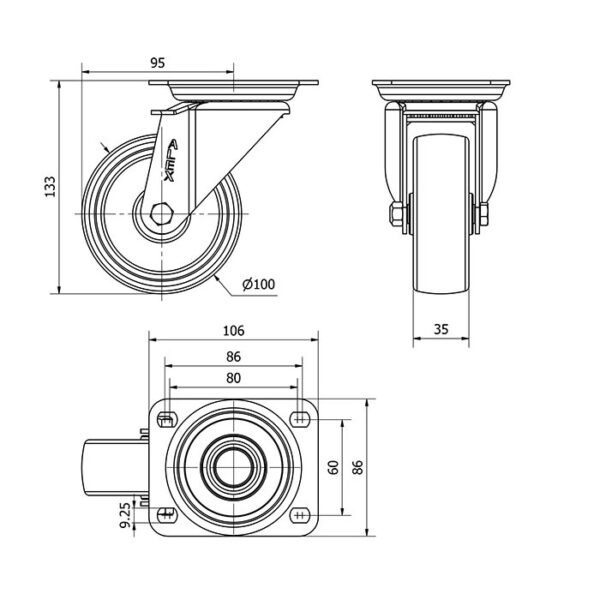 Rueda resina fenolica giratoria Alex diametro 100 mm. modelo 2-1098