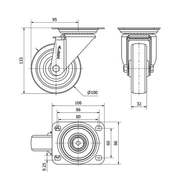 Rueda resina fenolica giratoria Alex diametro 100 mm. modelo 2-1178