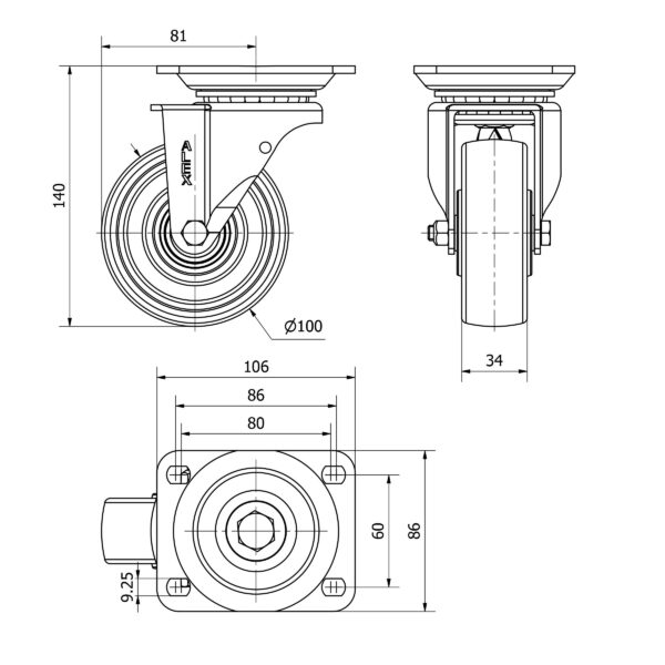 Rueda resina fenolica giratoria Alex diametro 100 mm. modelo 2-4983 EAN 8422202249834