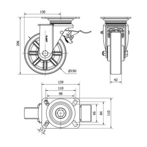 Rueda resina fenolica giratoria Alex diametro 150 mm. modelo 2-0014 EAN 8422202200149