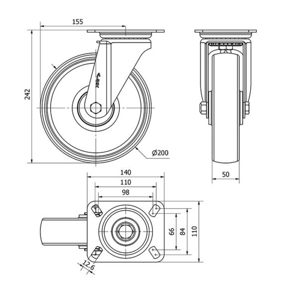Rueda resina fenolica giratoria Alex diametro 200 mm. modelo 2-4006 EAN 8422202240060