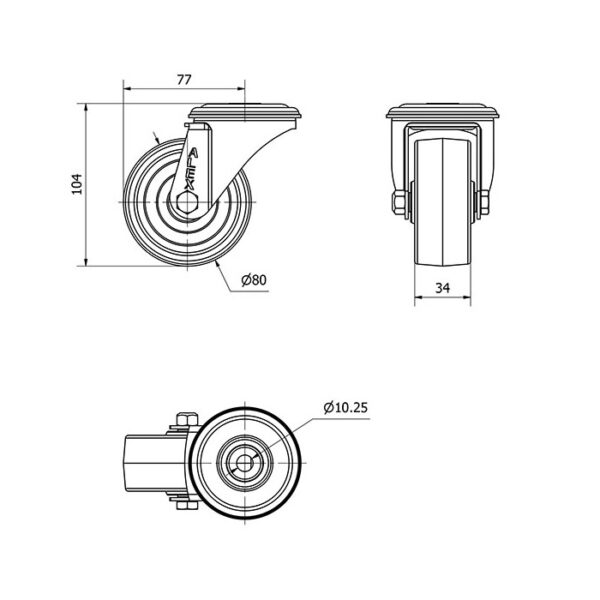 Rueda resina fenolica giratoria Alex diametro 80 mm. modelo 2-1383