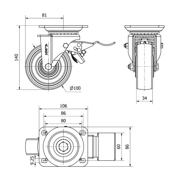 Rueda resina fenolica giratoria con freno Alex diametro 100 mm. modelo 2-4985