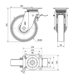 Rueda resina fenolica giratoria con freno Alex diametro 150 mm. modelo 2-1637 EAN 8422202216379
