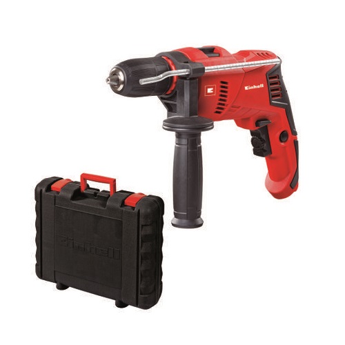 El taladro percutor Einhell TC-ID 500 E es un equipo pequeño y práctico, que sirve de gran ayuda a los aficionados del bricolaje para atornillado, perforación y taladrado de percusión en sus trabajos en casa, en el taller y en el garaje. Su portabrocas sin llave de alta calidad permite un cambio fácil de la herramienta. El tope de profundidad de perforación metálico con ajuste continuo garantiza una profundidad de perforación constante. El taladro percutor TE-ID 500 E está equipado con mangos suaves ergonómicos para un trabajo particularmente agradable. El mango adicional se fija de forma segura mediante una nervadura. El número de revoluciones del engranaje metálico resistente y duradero se puede adaptar al material que se va a procesar en cualquier momento gracias a la práctica preselección de velocidad. Debido al cuello de sujeción de 43 mm., el equipo también se puede utilizar en soportes de perforación. El TE-ID 500 E se puede guardar y transportar de forma rápida y segura en su práctico estuche.