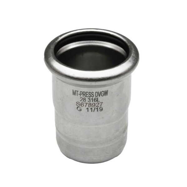 Tapón con conexión prensar hembra para tubería de acero inoxidable, fabricada en acero inoxidable A-316L según la normativa EN-14404, con juntas tóricas en EPDM/FKM y con rosca de acuerdo a DIN-2999. La curva soporta una presión máxima de 16 bar a 90°C. y de 6 bar a 180°C. Soporta un rango de temperatura de -20 a 110°C. con junta en EPDM y de -20 a 180°C con junta KFM. Cumple con los requisitos según UNE-EN-10088, así como DVGW GW534-2004 y DVGW GW541:2004-10. Está indicada para su uso en agua sanitaria, calefacción, contra incendios y aire comprimido (libre de aceite) si dispone de junta tórica en EPDM y para aceites, hidrocarburos (excepto gasoil), instalaciones solares y aire comprimido, si dispone de junta en FKM. Los accesorios inoxidables para prensar son aptos para tubos que cumplen con las especificaciones DVGW GW 541 y UNE-EN-10088. Los productos Corix son piezas de acero inoxidable de gran calidad, específicamente pensados para el ámbito industrial. Toda la gama está fabricada bajo estrictos parámetros de calidad cumpliendo con las más altas certificaciones en conducción de fluidos.