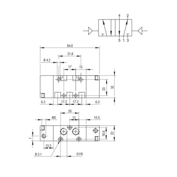 Valvula biestable Aignep 5/2 1/8″ 2 posiciones fijas 01VP150002