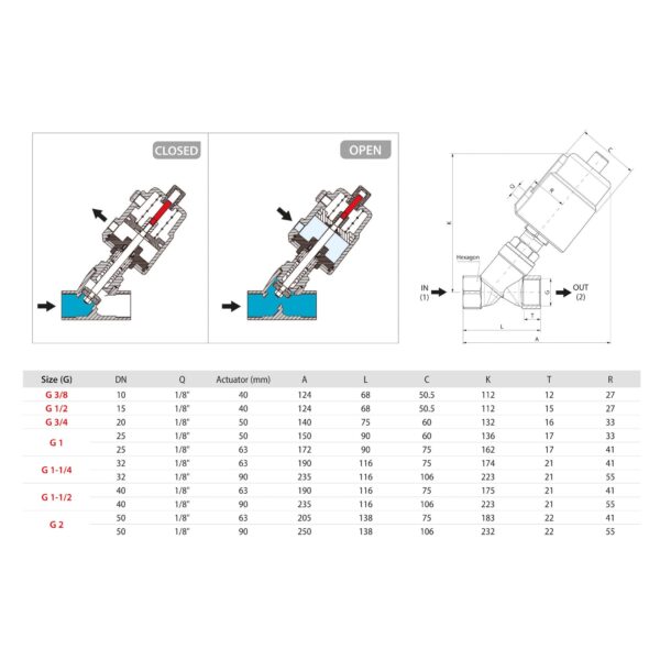 Valvula de asiento inclinado Aignep acero inoxidable 2/2 N.C. 1-1/4″ con actuador neumatico inoxidable X1YXF10630