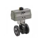 Valvula de esfera 2 piezas cuerpo acero bola a/inox. con bridas DN-80 y actuador neumatico simple efecto