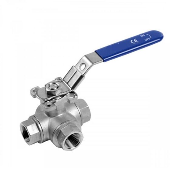 Valvula de esfera 3 vias paso en «T» a/inox. A-316 con rosca 1/4″ y pletina ISO PN-63