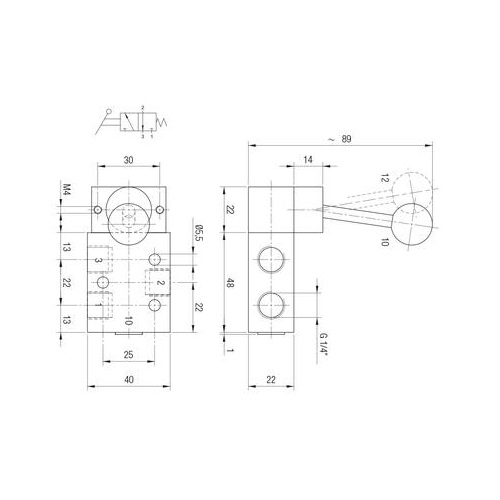 Valvula de palanca inox. Aignep monoestable 3/2 N.C. 1/4″ X1VL03NC03