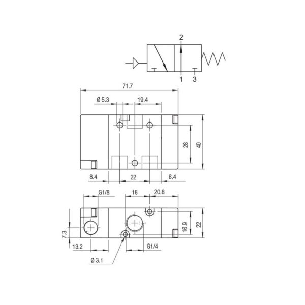 Valvula monoestable Aignep 3/2 N.O. 1/4″ retorno muelle 01VP03NO03