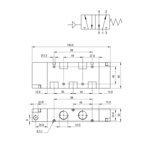 Valvula monoestable Aignep 5/2 1/2″ retorno muelle 01VP050005