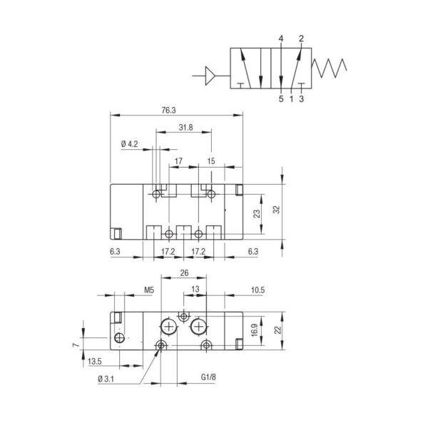 Valvula monoestable Aignep 5/2 1/8″ retorno muelle 01VP050002