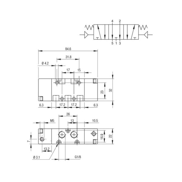 Valvula monoestable Aignep 5/3 O.C. 1/8″ retorno muelle 01VP07OC02