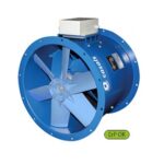 VENTILADOR HELICOIDAL TUBULAR CAMISA CORTA PALA VARIABLE: Envolvente tubular reforzado, fabricada en chapa de acero laminado. Montaje modular del conjunto motor hélice. Protegido contra la corrosión mediante recubrimiento en polvo de resina de poliéster. Motor asíncrono normalizado de jaula de ardilla con protección IP-55 y aislamiento clase F. Voltaje: 230/400 V. 50 Hz. para motores trifásicos hasta 4 KW. y 400 V. 50 Hz. para potencias superiores. HC: Hélice de polipropileno para perfil A2 y poliamida reforzada con fibra de vidrio para resto de perfiles.
