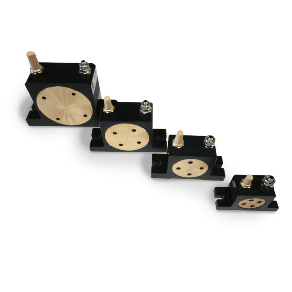 Los vibradores neumáticos rotativos de rodillo OLI de la serie OR genera una vibración de alta frecuencia debido a la rotación a alta velocidad de un rodillo, que describe un movimiento epicicloidal dentro de dos alojamientos de acero endurecido y rectificado. La serie OR se caracteriza por su alta velocidad, gran fuerza centrífuga (hasta 783 kg) y bajo consumo de aire.