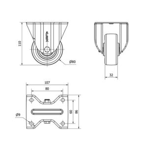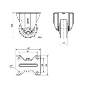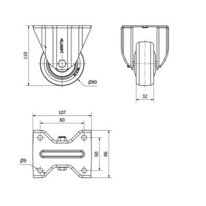 Rueda poliuretano fija Alex diametro 80 mm. modelo TW0214