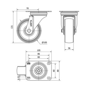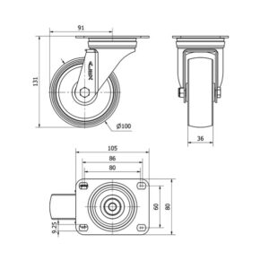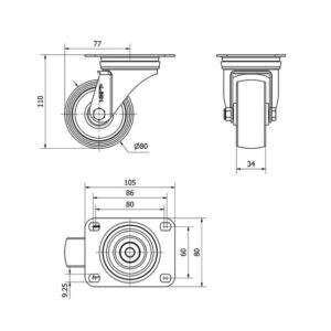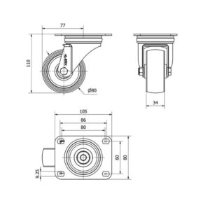Rueda poliamix giratoria Alex diametro 80 mm. 2-0149