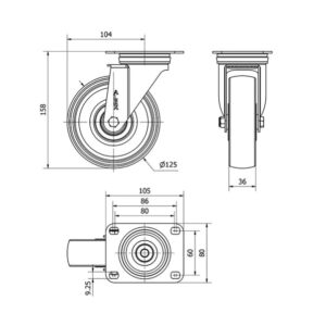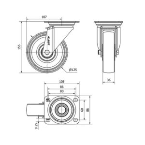 Rueda poliamix giratoria Alex diametro 125 mm. 2-0173