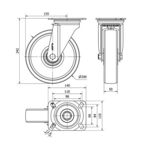 Rueda poliamix giratoria Alex diametro 200 mm. 2-0194