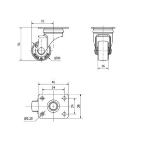 Rueda poliuretano giratoria Alex diametro 30 mm. 2-3512