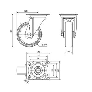 Rueda poliamix giratoria Alex diametro 150 mm. 2-0185
